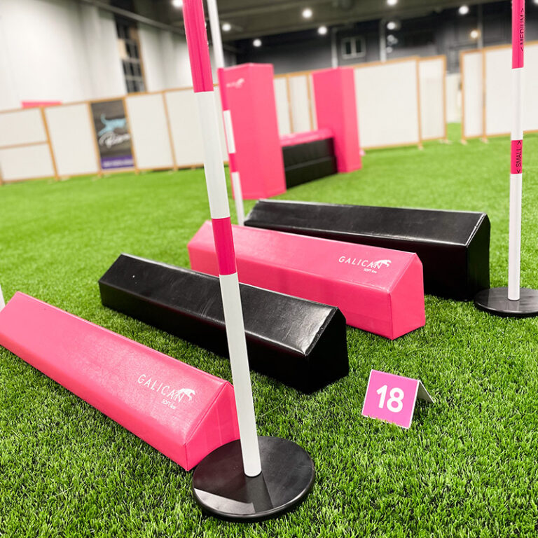 Keskuksellamme on käytössä uudet ja laadukkaat Galicanin kontaktiesteet (Intercan ja Soft line), pehmeät erikoisesteet sekä nykyaikaiset ja kevyet hyppysiivekkeet. Meille on ensisijaisen tärkeää koiraurheilun turvallisuus ja panostamme siihen täydellä sydämellä päivittämällä jatkuvasti estevälineistöämme vastaamaan koiraurheilun vaatimuksia sekä huoltamalla säännöllisesti laadukasta tekonurmeamme.