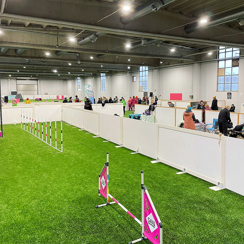 Agilitykenttä, jonka koko on 40x11m. Kentällä on Galicanin Soft line kontaktiesteitä. Rataa ei saa purkaa.