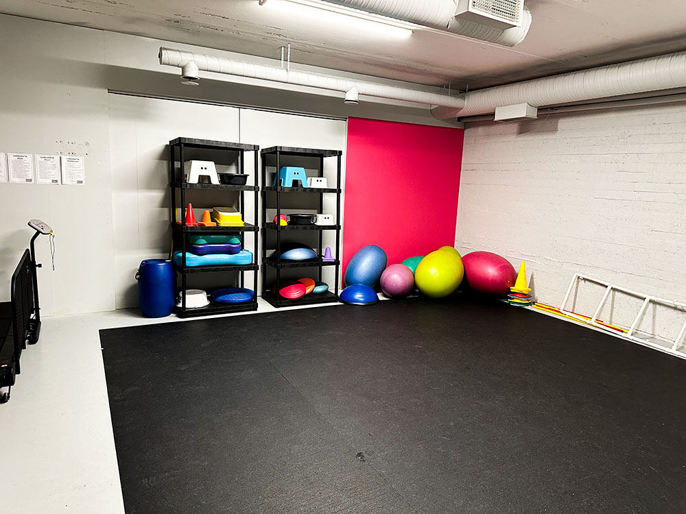 Meille on hyvin tärkeää urheilukoirien fysiikan kehittäminen ja keskukseltamme löydätkin ainutlaatuisen koirien oman jumppasalin. Jumppasalilta löytyy liukumaton, pitävä ja joustava kumimatto sekä paljon laadukkaita koirien jumppavälineitä, kuten vaikkapa dobo-palloja, kartioita, tasapainotyynyjä, bones-luutyynyjä, vateja ja korokkeita.